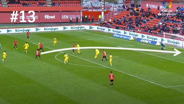 #17:前半12分:味方がバイタル右側から放ったミドルシュートをキーパーが弾いて左に溢れたところが久保が左足インステップで叩き込み先制点をゲット。ビジャレアル移籍後初ゴールです。