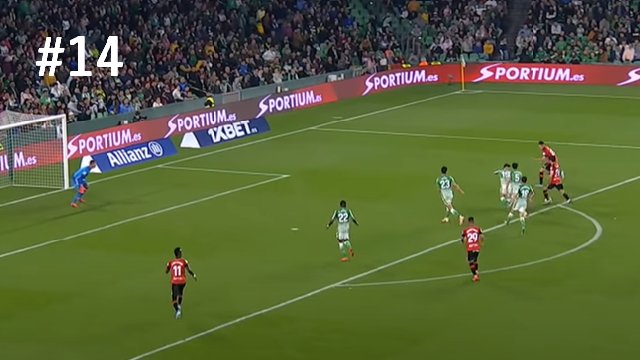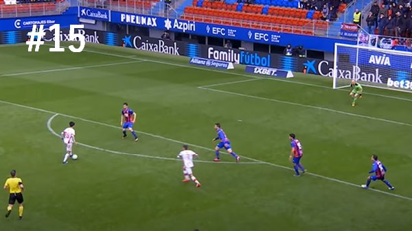 #18:後半38分:去年リーグ戦でゴールした時と同じ相手しかも同じ時間帯でした。自陣深い位置から大きくクリアしたボールを相手キーパーが不用意なクリア。それを久保が見逃さず広いディフェンスと1対1の場面で抜ききらず左にずらして思い切り左足インステップで振り抜きゴール左隅に弾丸シュートを叩き込みゴーーーール!!ヘタフェが1部残留を決めた素晴らしい決勝点でした。本人の喜びっぷりが爆発していて、ユニフォームを脱いでイエローカード貰う所も含めて素晴らしいです。