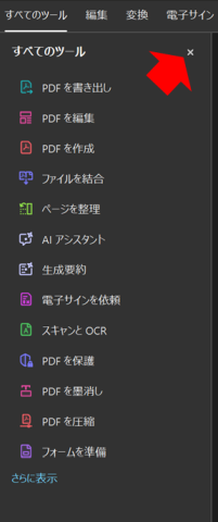 ①“すべてのツール” の右にある「×」でツールウインドウを閉じる