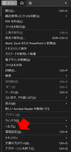 1)「メニュー」 → 「新しい Acrobat Reader を無効にする」 を選択