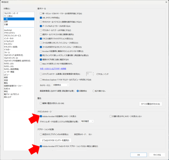 - Adobe Acrobat がデフォルトのPDFアプリケーションではない場合に通知